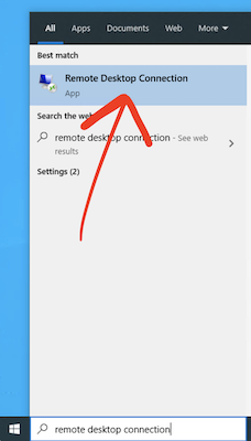 - On your Windows 10 PC: In the search box on the taskbar, type Remote Desktop Connection, and then select Remote Desktop Connection.
