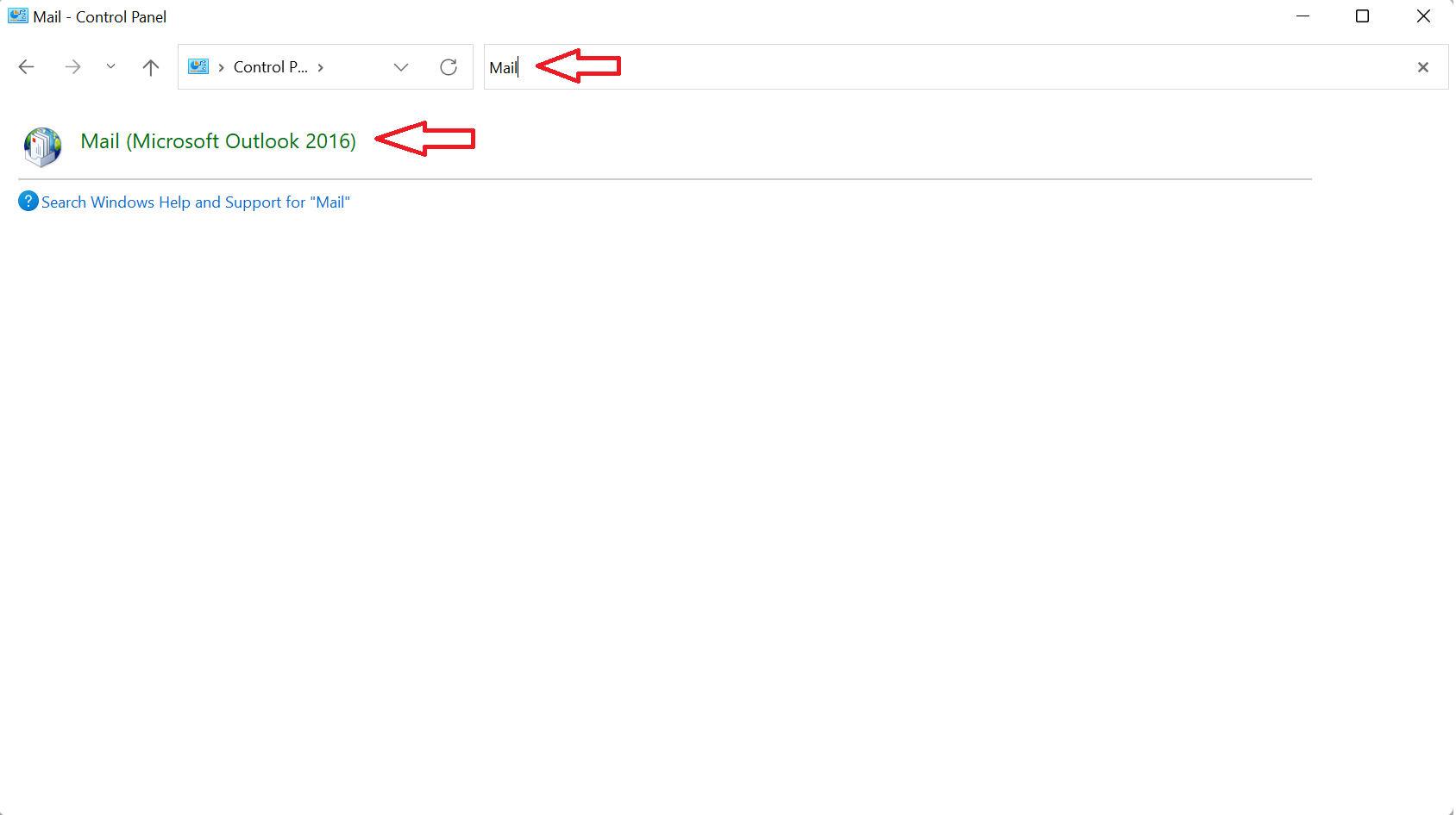 - In Control Panel, search for and open the Mail icon.
