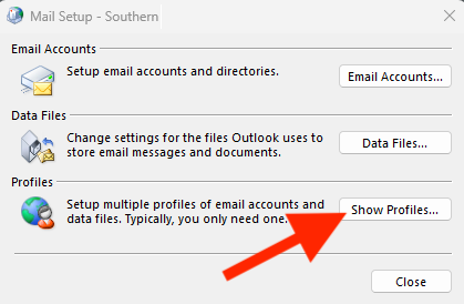 - On the Mail Setup - Outlook window, click Show Profiles...
