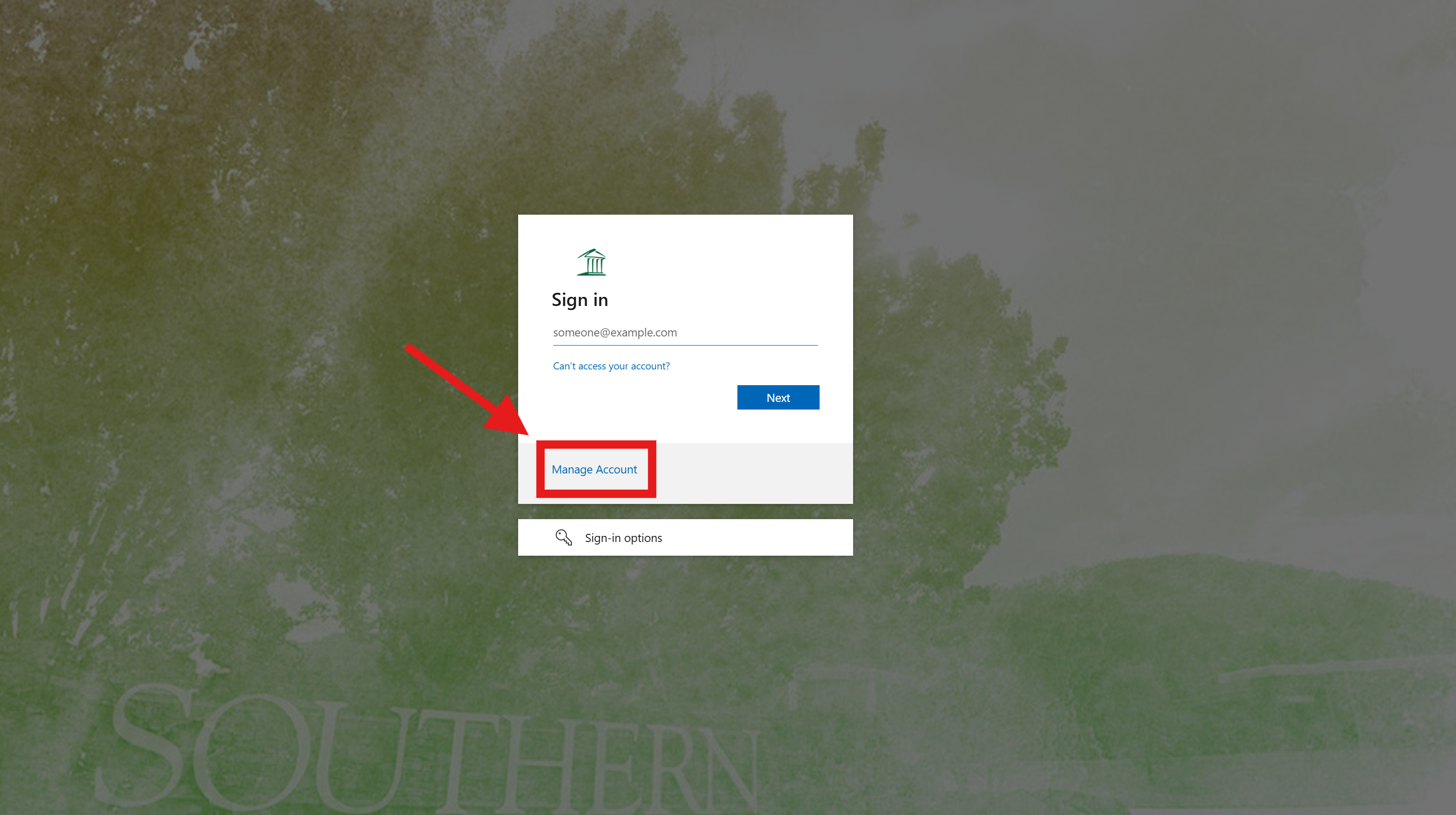 - Go to "myaccess.southern.edu" and click on "Manage Account" button.