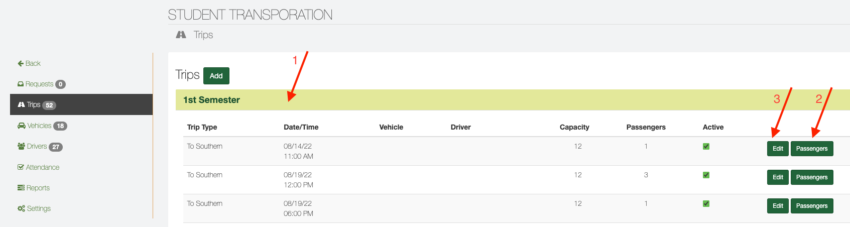 3. Then go back to the list of trips and click on edit. Change the date of the trip.