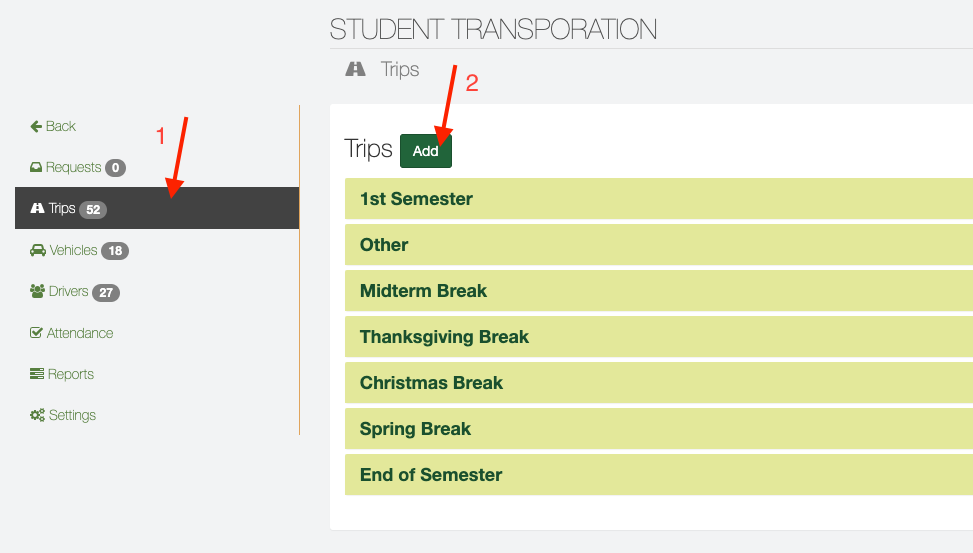 - Click the "Add" button and fill up the trip info. The Vehicle info on the right is not required. Make sure to check the "Active" box.