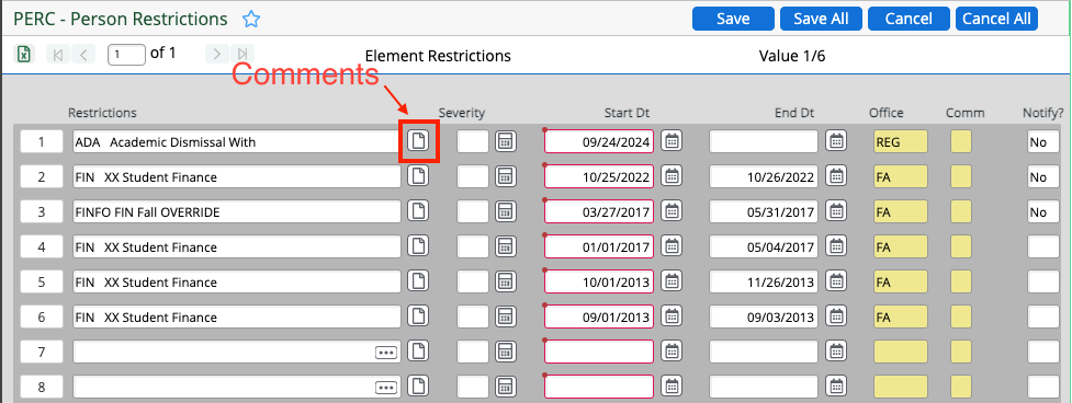 - [Optional] The term code could be added to the comments for the letters that display the term name. For example, to display "Fall Semester," add "F24" to the comments field.