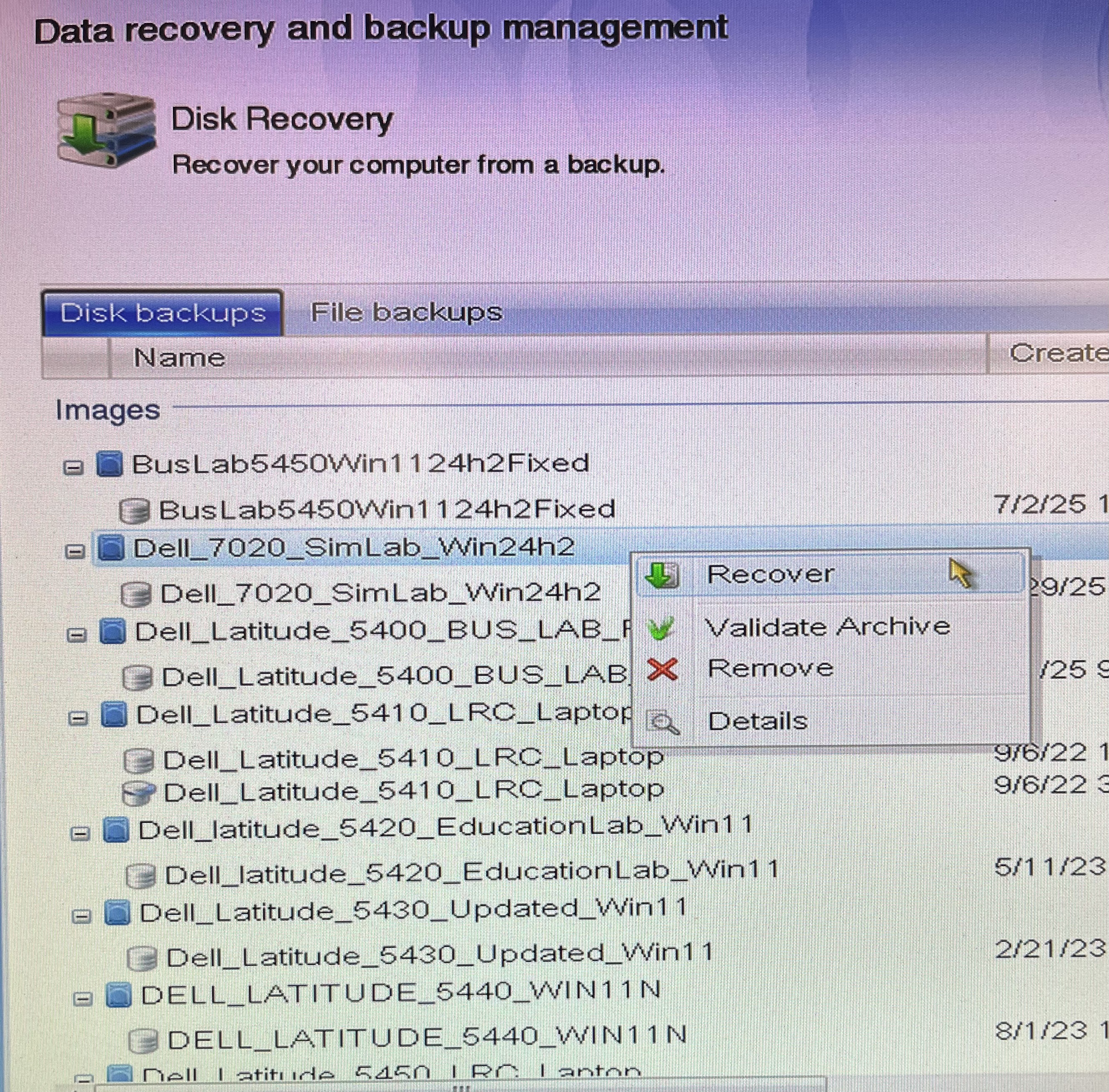 Step 4: choose whichever image is needed for the current situation. Right click and select Recover or left click and then click select at the bottom right.
