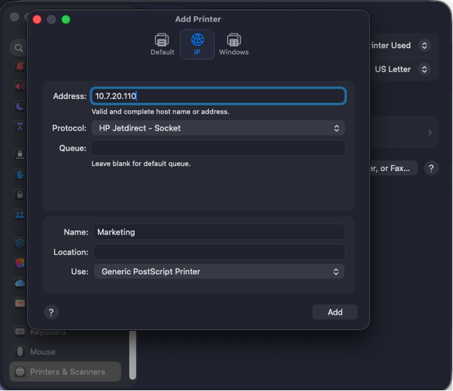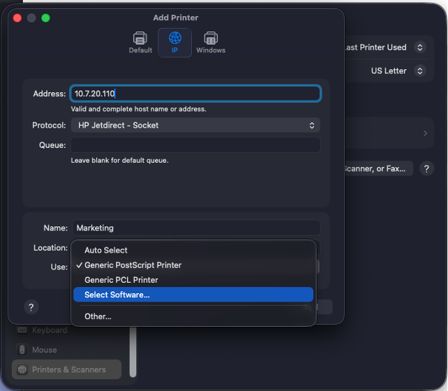 Step 4: Add the printer's IP address.