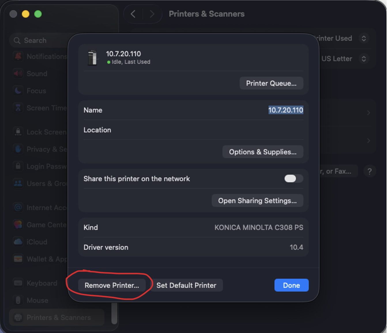 Step 2: Remove the existing printer.